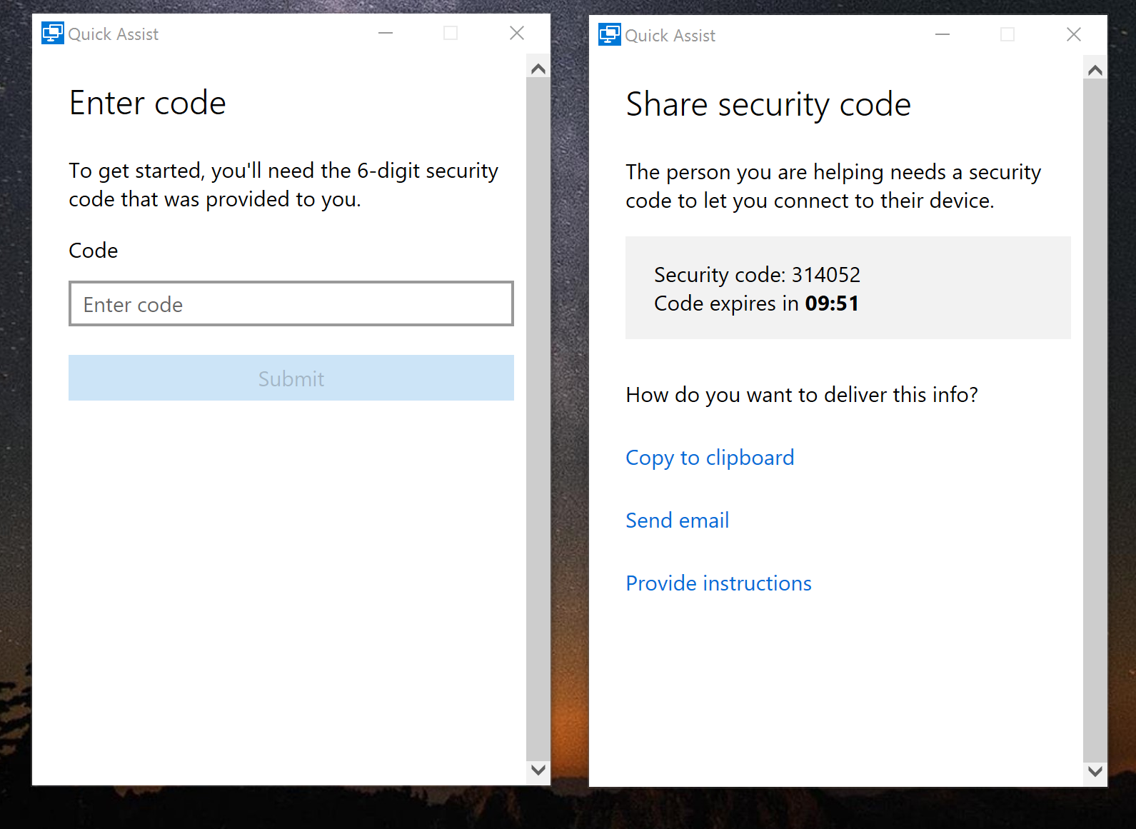 I just read this blog on WinSupersite… there is a new feature call Quick Assist in Windows 10 that basically gives you a 6 digit code to type in and then you are helping somebody out… I don’t think it gets any faster than this…